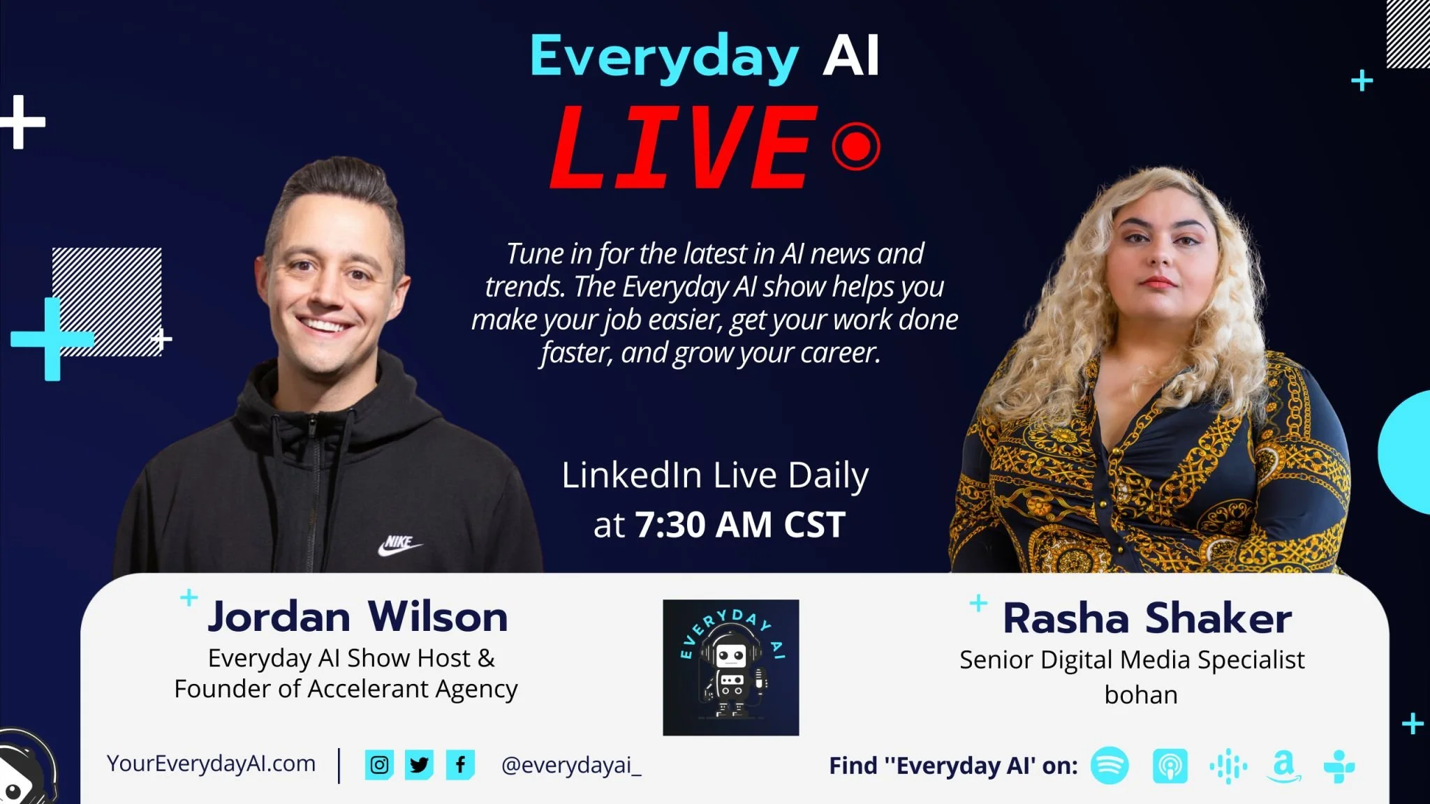 Everyday AI with Special Guest Rasha Shaker Apr 28 Written By Rasha Shaker Rasha Shaker joins the Everyday AI show to dive into what's happening in the industry, and how she is using AI in her everyday life. Rasha Shaker http://rashaker.com